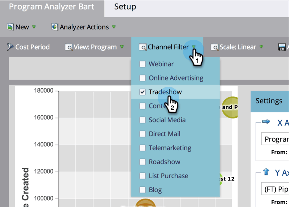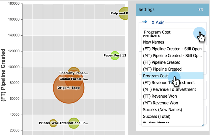 使用 X Axis 下拉菜单选择水平轴的量度。 我们将从 Program Cost 开始。