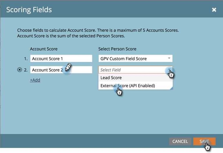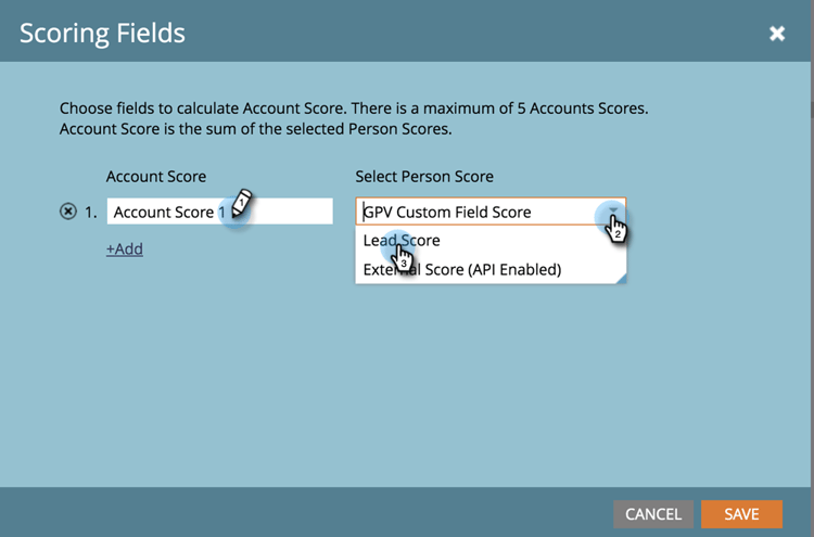 输入Account Score名称,单击 Select Person Score 下拉列表并选择相应的得分。