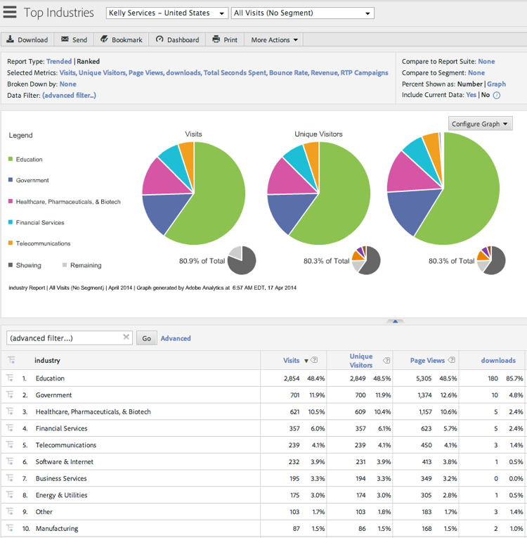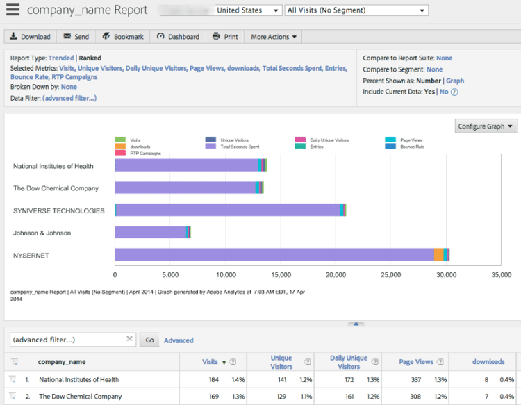 根据组织名称、行业和RTP区段以及实时营销活动数据创建增强的SiteAdobe Analytics报表。