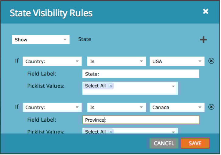 是否希望仅在用户选择美国作为其“国家/地区”时显示“州”? 根据客户如何回答您表格中的问题,向客户展示不同的白皮书,您觉得如何? 直接从编辑器将条件逻辑构建到表单中。 不需要javascript!