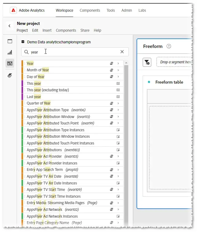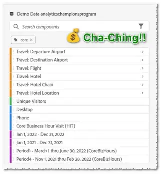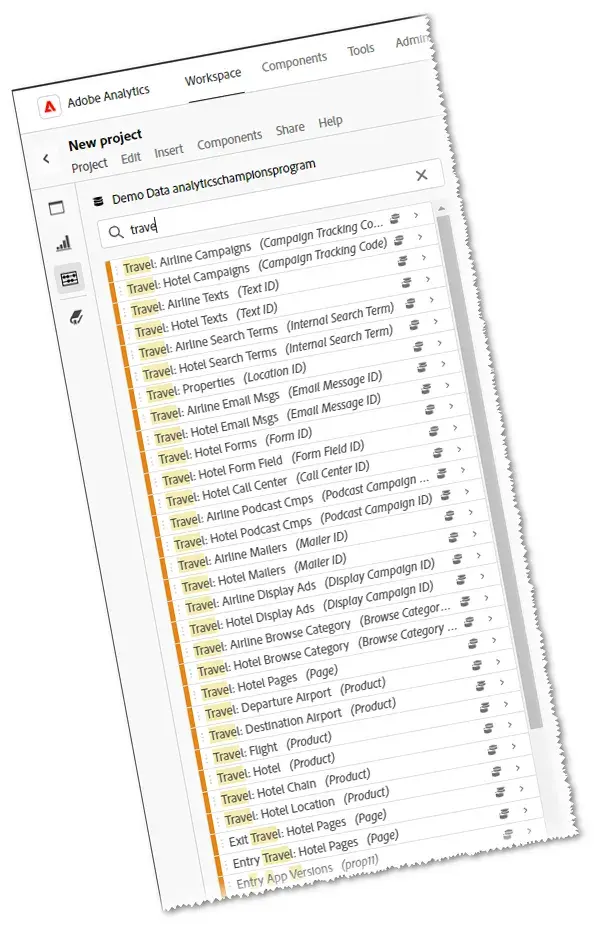 请问有多少人遇到过这种情况?您开始搜索 维度日期范围区段计算量度,却被一大堆自己根本不需要的东西所淹没(见 图 1)。  Analysis Workspace 它认为它试图有所帮助,但实际上,它只是成功地完全没有帮助。