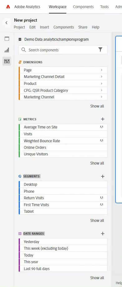 不仅如此,您已经创建了 新的日期范围区段,而且由于它们“太新了”,您认为下次进入  Adobe Workspace 时至少应该能快速轻松地找到这几项。我说得对吗?
