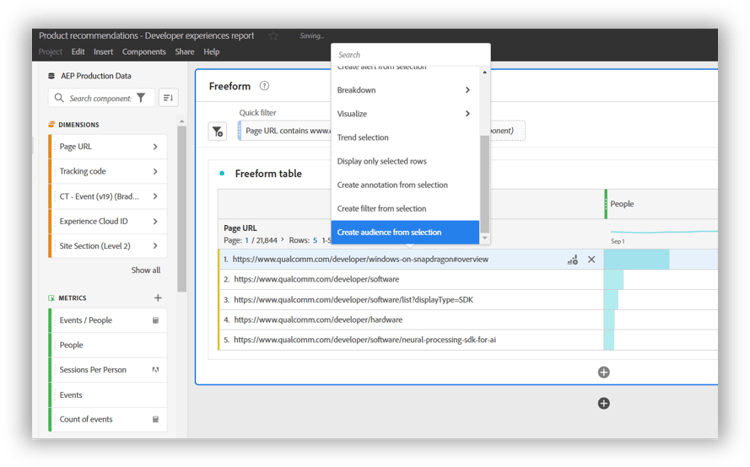 启用 Customer Journey Analytics 对于简化从洞察到受众创建和激活的路径至关重要。其最强大的功能之一是能够在平台内直接创建受众,并将其发送到实时客户数据平台进行激活。此外,Customer Journey Analytics 可以整合来自多个来源的数据,例如,结合 Google Ads、网络分析和营销自动化数据,以提供更全面的受众视图及其跨平台互动情况。