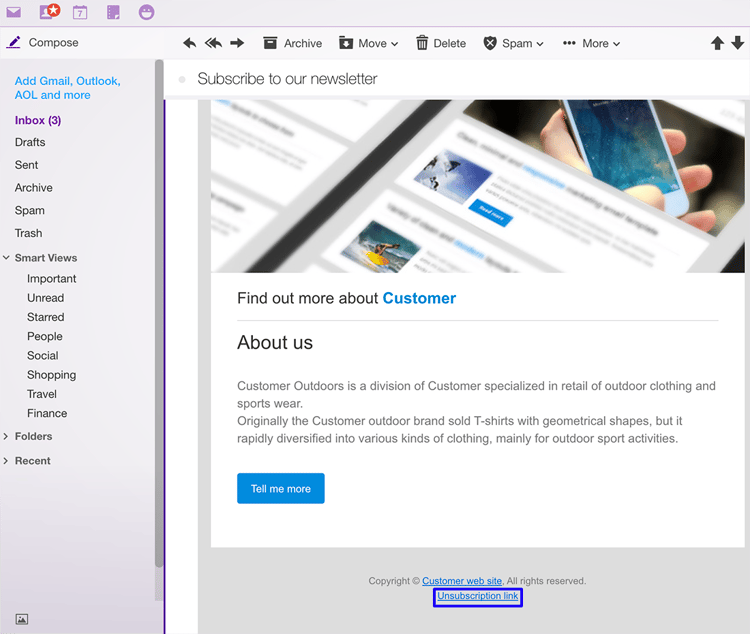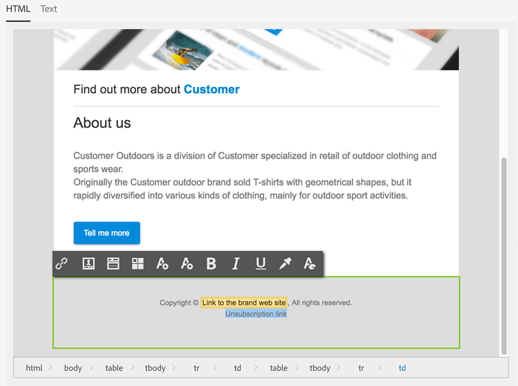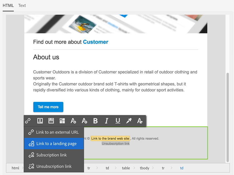 按一下相同內容區域並輸入取消訂閱連結。