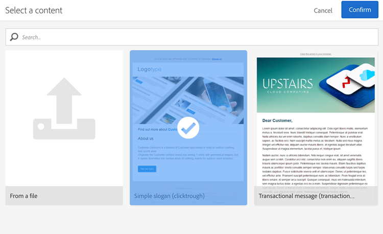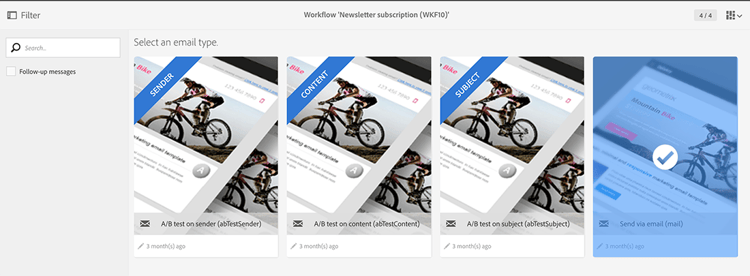連按兩下 Email delivery 活動並選擇 Single send email 或Recurring email。 選取您的選項並按一下Next。