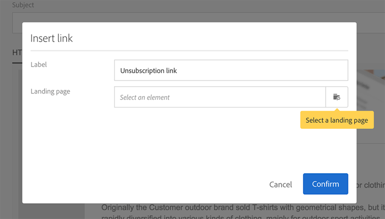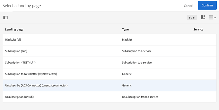 選擇包含取消訂閱服務連結的內容。 按一下 Confirm。