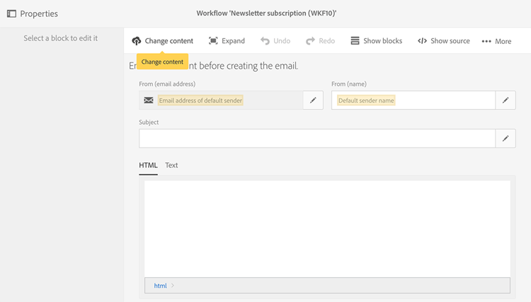 按一下 Change content 以新增HTML範本。