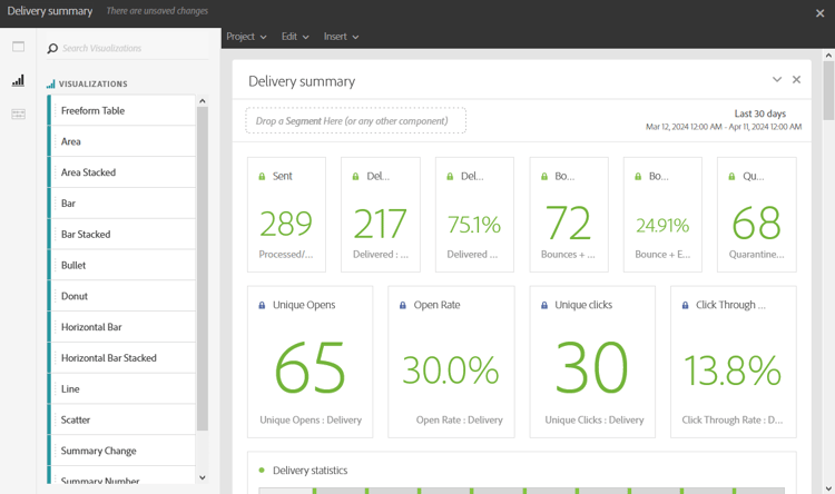 視覺效果 索引標籤可讓您拖放視覺效果專案,例如區域、環形圖和圖形。 視覺效果可提供資料的圖形表示。