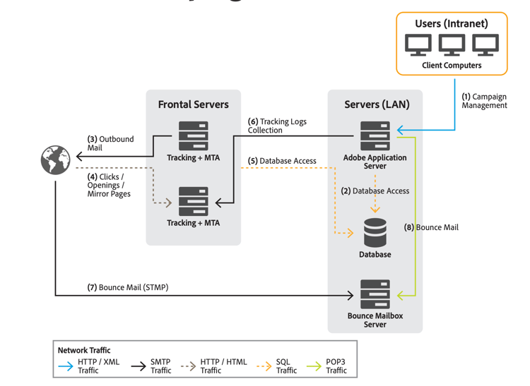 典型的Adobe Campaign解決方案部署包含下列元件: