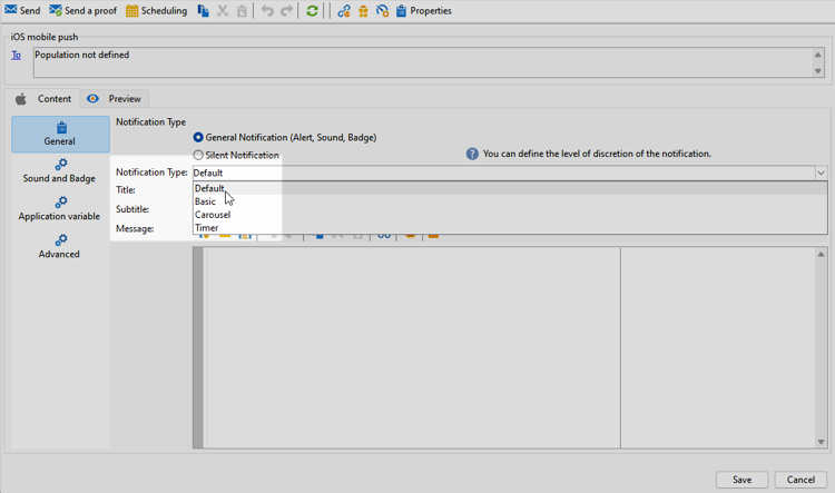 選擇 General notification (Alert, Sound, Badge) 作為您的 Notification type。