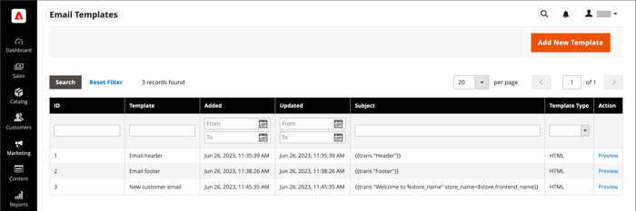 在 管理員 側邊欄上,移至 Marketing > Communications>Email Templates。
