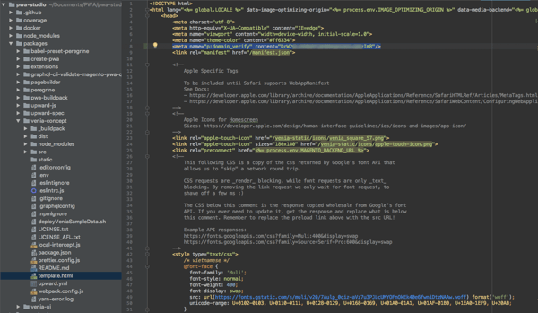 packages > venia-concept > template.html。 -
