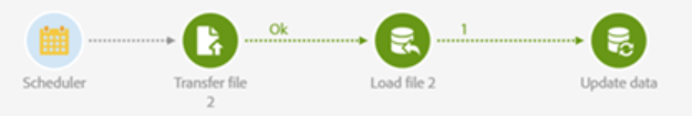 檔案傳輸將允許根據檔案名稱模式從外部伺服器下載多個檔案。 每個檔案都會傳遞至「載入檔案」活動,將資料傳遞至更新。