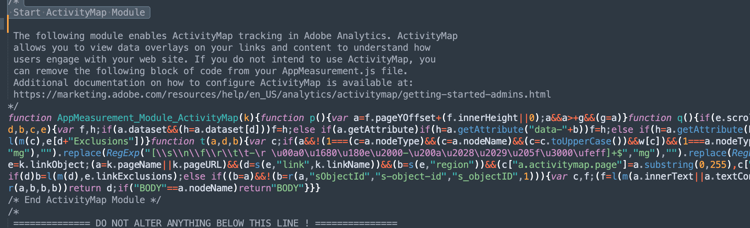 從AppMeasurement.js檔案中刪除AppMeasurement_Module_ActivityMap模組