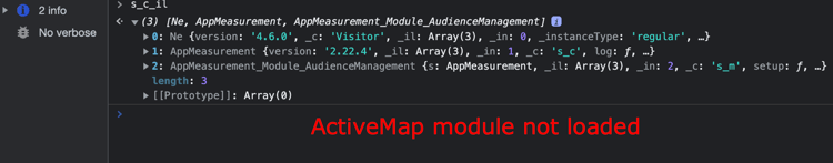 停用Active Map後,請檢查Active Map模組是否未透過's_c_il'命令透過瀏覽器'console'功能表載入