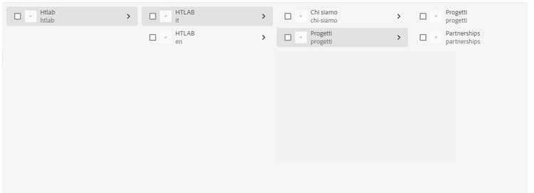 英文 專案 頁面的名稱為 progetti,但它的別名也設定為 專案,因此它應該可以在http://< Publisher>存取。< URL> /content/htlab/en/progetti.html和http://<發行者> 。< URL> /content/htlab/en/projects.html。