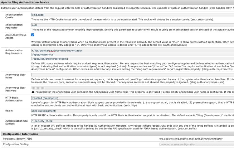sling.auth.requirements清單。 請參閱下文: