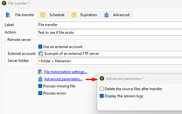 WFSERVER處理序上啟用 詳細資訊。 - 啟用 檔案傳輸 活動的 顯示工作階段記錄檔 選項。