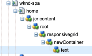 內容作者更新此元件時,會在/content/wknd-spa-react/us/en/home的root/responsivegrid/text_20建立新的text_20節點。