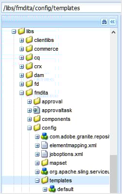 設計範本資源在伺服器上的放置位置沒有限制,但通常會根據其功能進行邏輯組織。 例如,預設範本的所有JavaScript和CSS檔案都儲存在/etc/designs/fmdita/clientlibs/siteoutput/default資料夾下。 無論這些檔案位於何處,都會由JCR節點集合連結在一起。 這些JCR節點和檔案共同構成了整個設計範本。