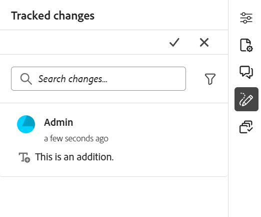 若要存取此功能,請選取右側面板中的 追蹤變更 圖示。