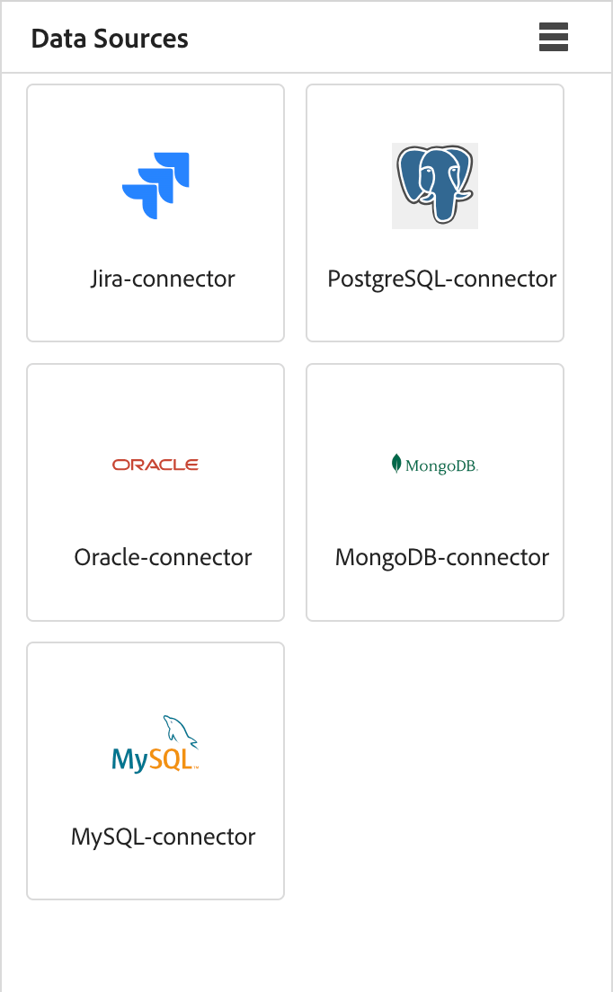 資料來源 是您儲存和管理組織資料的系統。 這些是您的記錄系統,例如JIRA、SQL資料庫、PIM或PLM。 AEM Guides提供連線至您的資料來源的功能,並使用來自這些來源的資料。