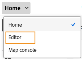 若要啟動編輯器,請移至導覽列,然後從下拉式清單中選取 編輯器。 預設會選取「首頁」。