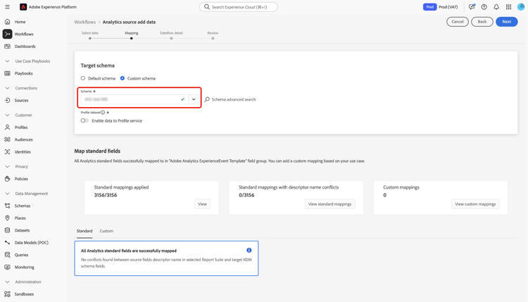 如果您編輯的結構描述是由Experience Platform Web SDK資料流中指定的設定檔資料集使用,該資料集現在會包含新的同意欄位。 您現在可以返回同意處理指南,繼續設定Experience Platform以處理同意資料的程式。 如果您尚未為此結構描述建立資料集,請依照下一節中的步驟操作。