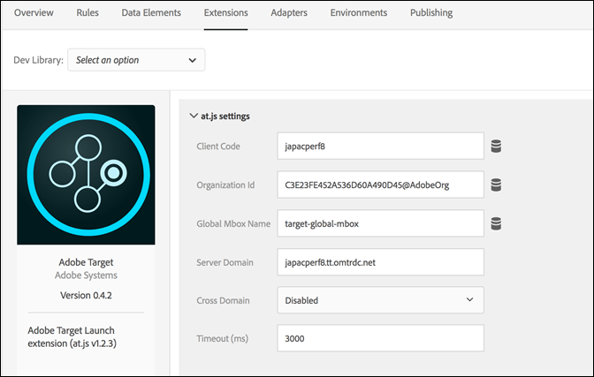 您所有的at.js設定(除了「逾時」以外)都會從Target使用者介面的at.js設定中自動擷取。 擴充功能只會在其首次新增時從Target使用者介面擷取設定。因此,如有其他更新,應在UI中管理所有設定。