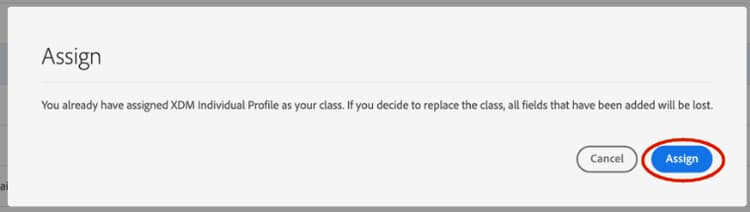 隨即開啟新的對話方塊,要求您確認要指派新類別。 選取 Assign 以確認。