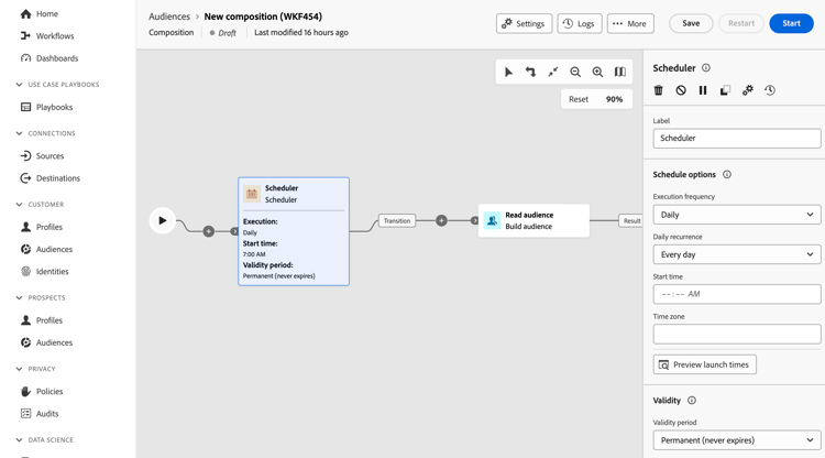 排程器 活動是 流程控制 活動。 它可讓您排程構成何時開始。 此活動應視為已排程的開始。它只能用作構成的第一個活動。