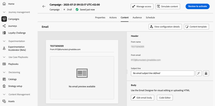 若要設定訊息內容,請瀏覽至 內容 索引標籤或按一下 編輯內容 按鈕。