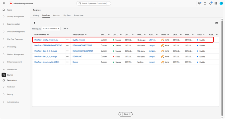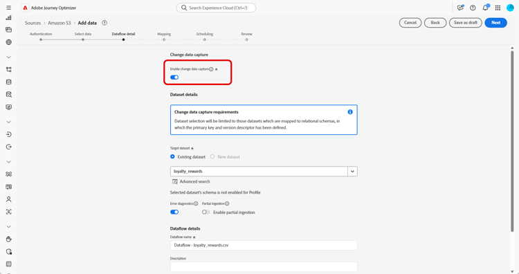 由於Adobe Journey Optimizer行銷活動要求所有已上線的資料集都必須透過 變更資料擷取 啟用,因此客戶有責任管理來源處的刪除工作。 從來源系統刪除的任何記錄都會自動從Adobe Experience Platform中的對應資料集中移除。