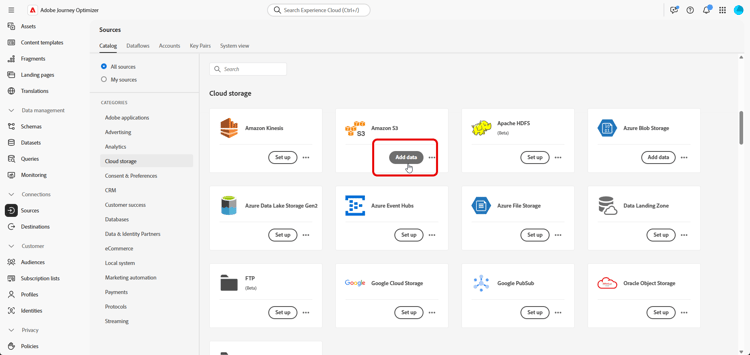 Adobe Experience Platform 讓您可以從外部來源擷取資料,同時可以使用 Experience Platform 服務來建立、加標籤,同時強化傳入資料。 您可以從多種來源 (如 Adobe 應用程式、雲端型儲存空間、資料庫和其他許多來源) 擷取資料。