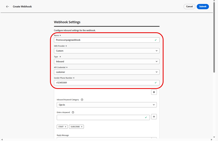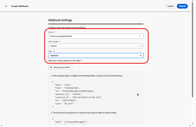 在建立並設定Webhook的輸入設定後,您現在需要建立SMS訊息的頻道設定。