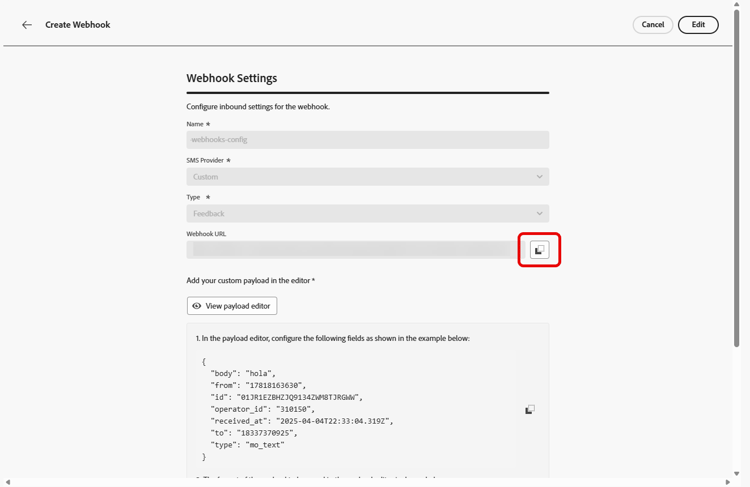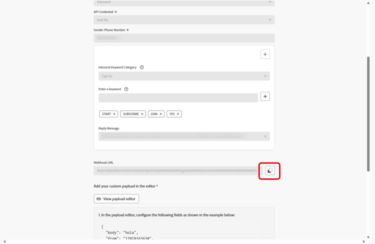 從您先前提交的 Webhook 存取及複製新的Webhook URL。