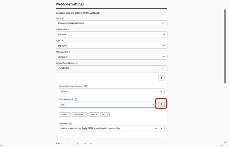 若要使用Adobe現成未提供的自訂提供者(例如Sinch、Infobip、Twilio)在Journey Optimizer中傳送SMS和RCS訊息,請執行以下步驟:
