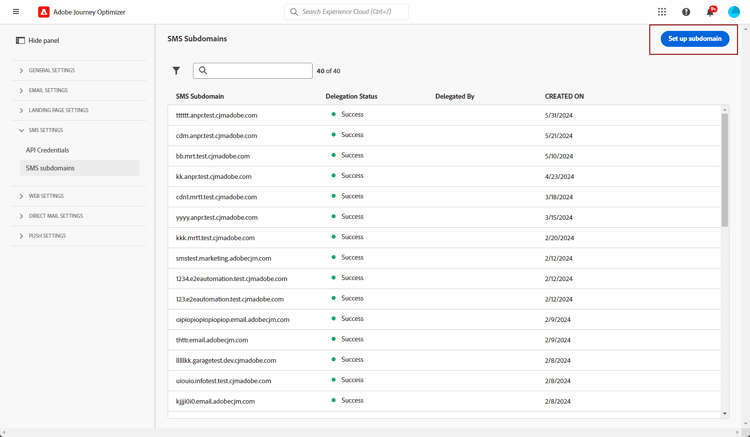 不過,在Journey Optimizer內測試功能時,可能需要建立SMS子網域。 測試完成後,這可能會導致環境雜亂,並包含不必要的設定,因為UI不允許移除或轉派SMS子網域。