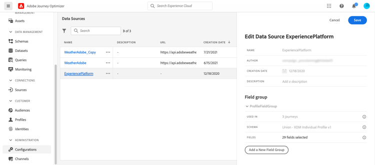 即使自動新增預設名稱,我們仍建議您為欄位群組提供名稱。 事實上,Journey Optimizer中的其他使用者可以看到欄位群組名稱。 為欄位群組指定相關名稱是最佳做法。