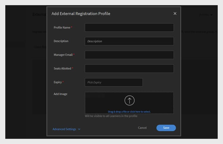 - 自助註冊設定檔:允許學習者使用管理員建立的註冊連結在Adobe Learning Manager中自助註冊為學習者。