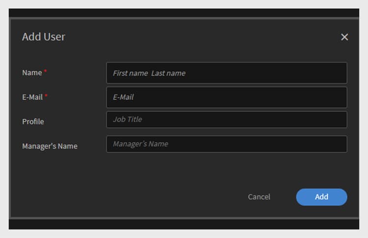管理員可提供使用者的名稱、電子郵件、唯一識別碼及管理員名稱,以手動方式新增使用者。 Adobe Learning Manager中的唯一識別碼是管理員在建立使用者時指派的必要識別碼。 每個使用者都必須有專屬的值,並作為整個系統的一致參考。