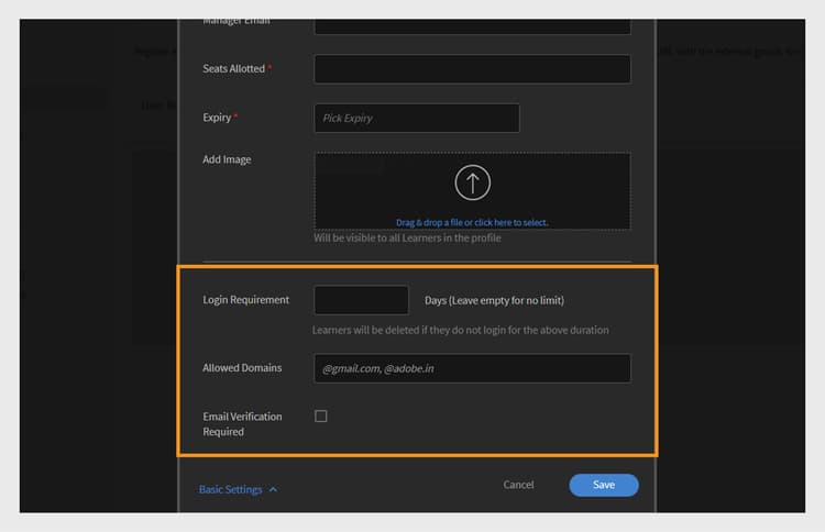 - 登入需求: 輸入天數。 如果學習者在整個期間都停用,系統會自動將其移除。