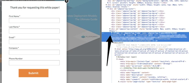 由於Lightbox中的表單基本上是iFrame中的表單,因此指令碼會放置在該iFrame中。