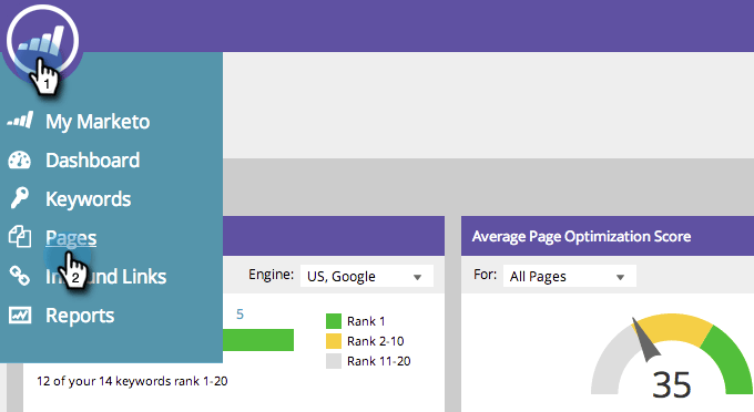 Marketo SEO會自動編目您的網站並進行追蹤。 萬一我們漏掉了幾個,請像這樣將它們放入SEO應用程式中。