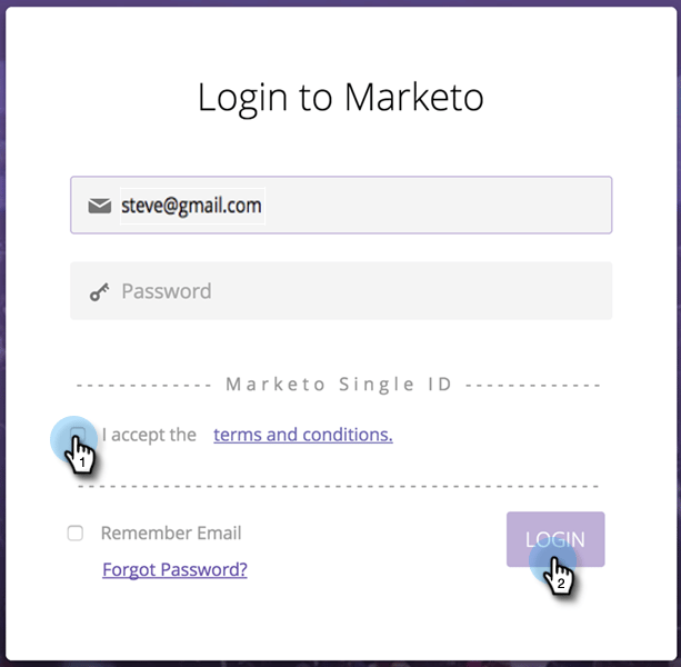 所有Marketo訂閱都隨附選用的通用ID功能。 在每個個別執行個體中,您的Marketo管理員必須使用相同的登入邀請您加入每個不同的訂閱。 Marketo無法自動合併您現有的登入。