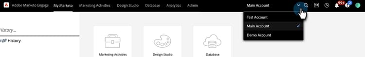 當您登出再登入時,Marketo會自動將您登入上次登入的訂閱。 如有必要,您可以切換至其他訂閱。