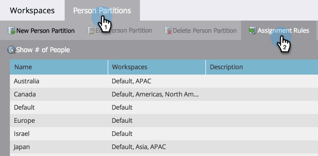 在 Person Partitions 標籤下,按一下 Assignment Rules。