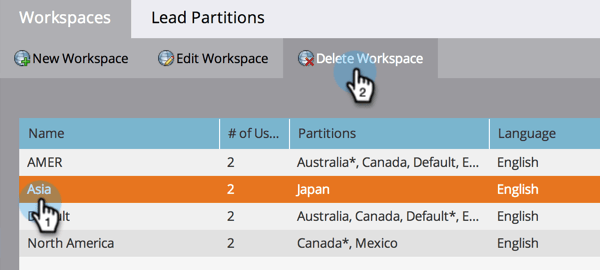 選取工作區並按一下 Delete Workspace。