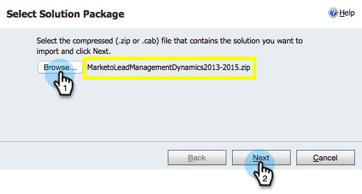 按一下 Browse 並選取您下載的解決方案。 按一下「Next」。