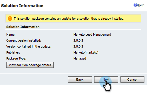 您必須先在Dynamics中安裝Marketo解決方案,才能與Marketo同步Microsoft Dynamics 2016內部部署/Dynamics 365。